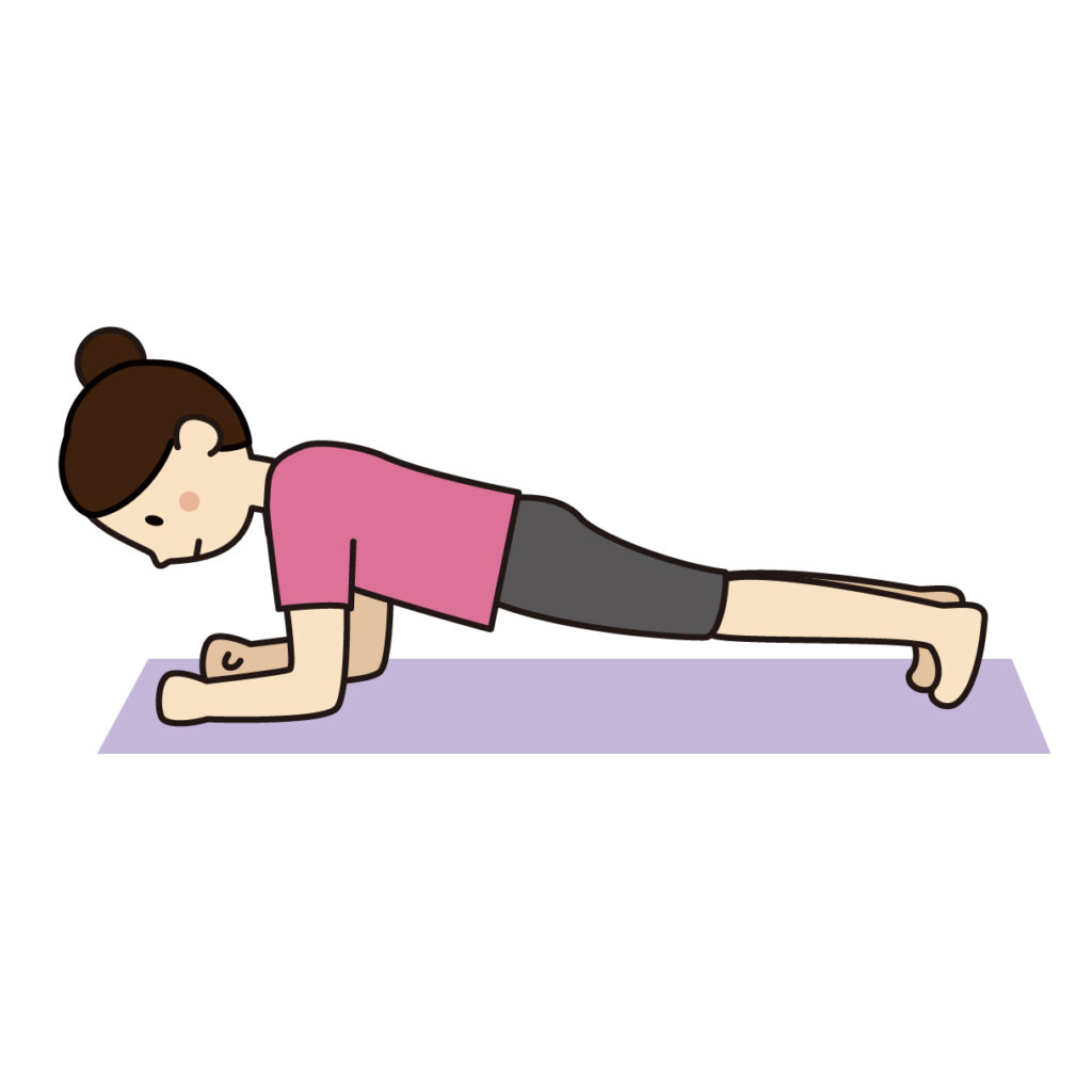 プランクは、腹直筋、腹斜筋、脊柱起立筋など、体幹の筋に。