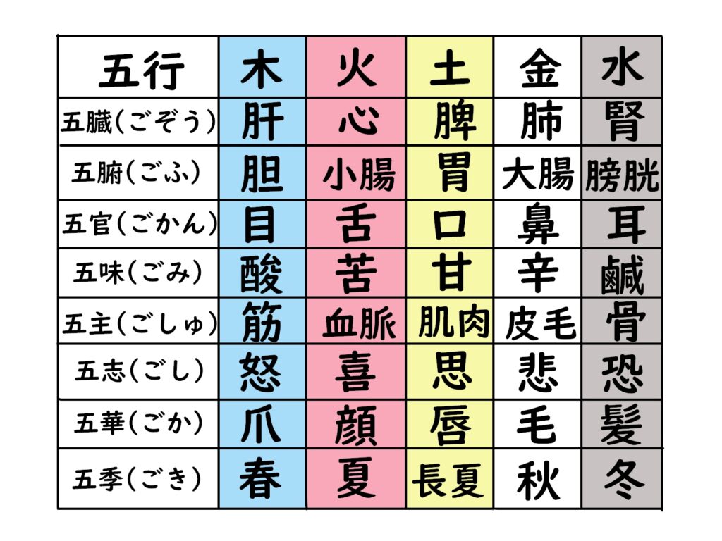 上の表に色は入ってませんが、赤は火行、つまり夏と同じ行のところの色なんです。暑い夏に、赤色は暑苦しい。人は中庸を求めるため、逆の性質のものに惹かれる。