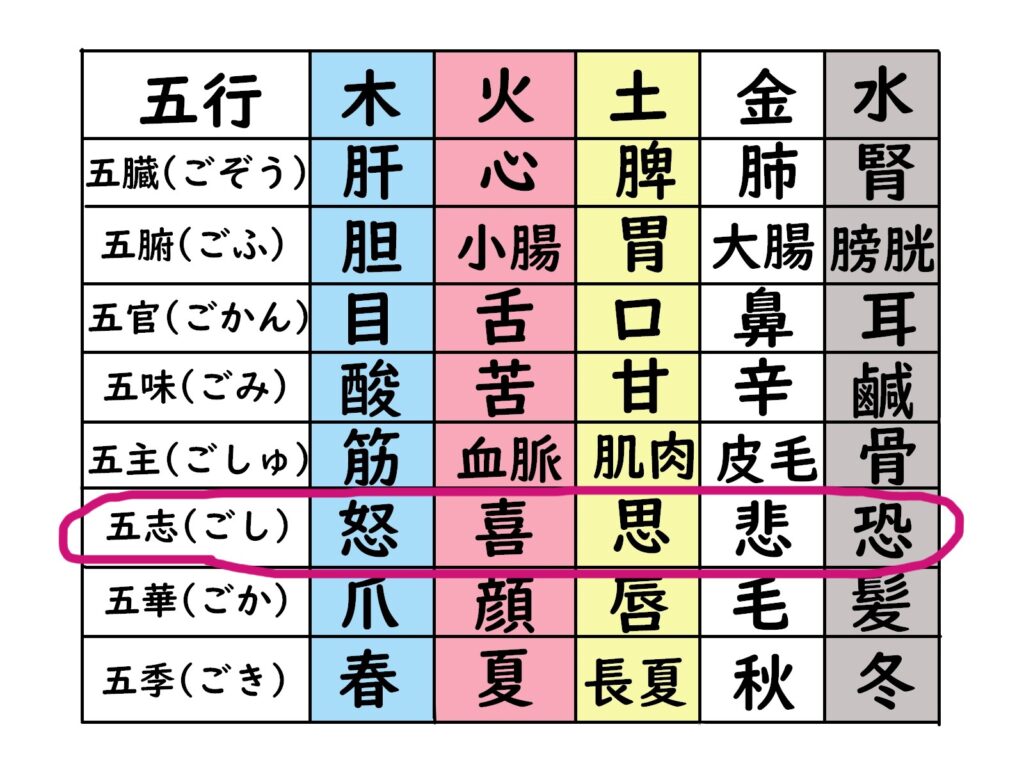 そうそう、五志は5種類の感情を言っていますが、つくづく感情というのはアタマでなく臓腑で起こるものだと思っています。感じることによって、じわあーっと湧き上がってくる。