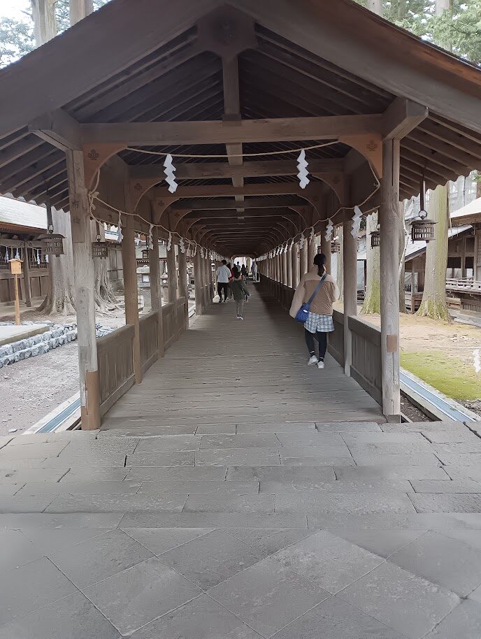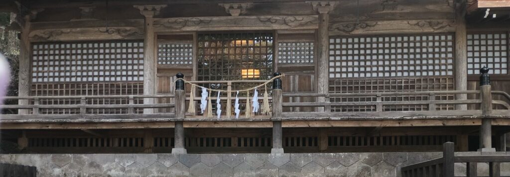 本宮のまわりは見上げると首が痛くなるほど高い杉の木に覆われている。なんか、ご神木と簡単に言えばそれまでだけど、何かが宿っているんじゃないかと感じさせるような木々だ。