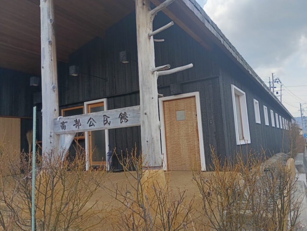 公民館だそう。この柱、御柱風。
